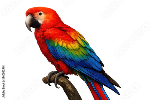 © whitestorm, Naklejka premium Colorful Scarlet Macaw parrot isolated on transparent background, vibrant bird