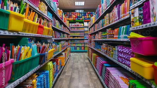 © Shahid, Fototapeta premium Colorful school stationary in store generated.AI