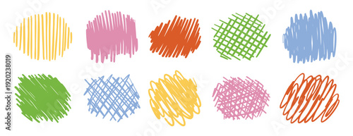Fototapeta premium Colorful scribble backgrounds set. Hand drawn marker strokes. Abstract doodle...