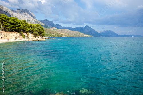 Fototapeta premium colorful sea view with mountains in background, zivogosce, croatia