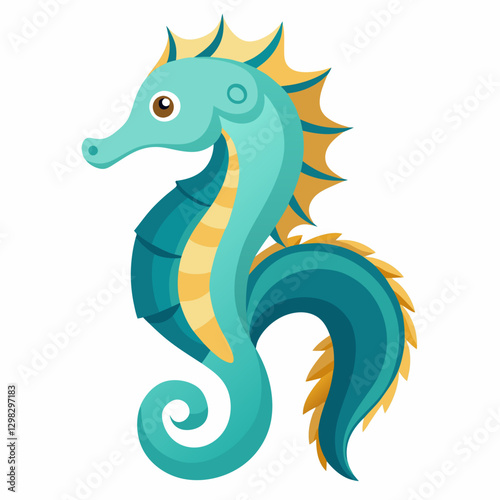 Fototapeta premium Colorful seahorse illustration with fins and curly tail