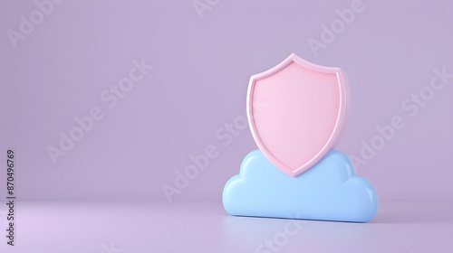 Obraz premium Colorful shield and cloud icon on a pastel background symbolizing digital...