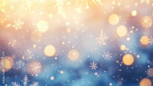 © pilipphoto, Naklejka premium Colorful shiny winter background with snowflakes and bokeh light