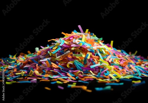 Fototapeta premium Colorful Shredded Paper Confetti Pile on Black Background