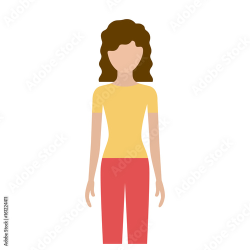 © Grgroup, Fototapeta premium colorful silhouette faceless front view woman with pants and curly hair vector illustration