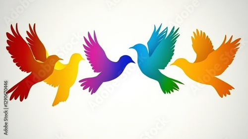 © Bullan, Obraz premium Colorful Silhouettes of Birds in Flight Against Backdrop
