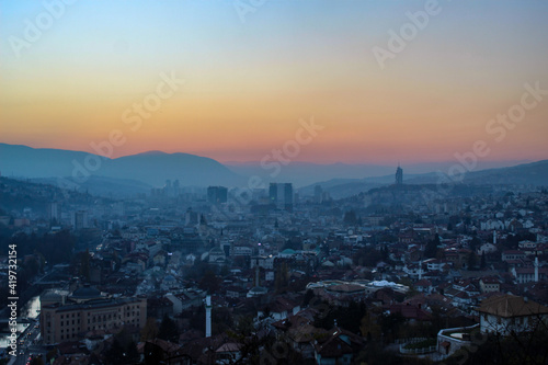 © Mahir, Fototapeta premium Colorful sky and sunset over Sarajevo. City of Sarajevo before night. Sarajevo, Bosnia and Herzegovina.