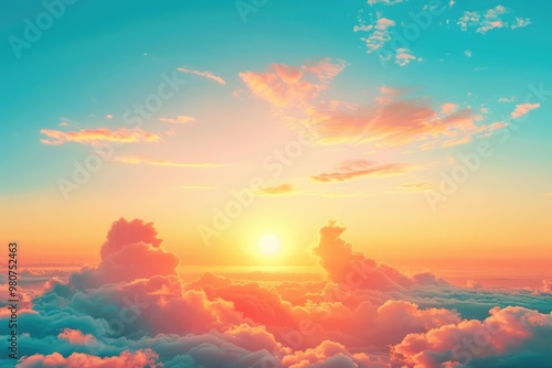 © Vibu design gallery, Fototapeta premium Colorful sky at sunrise and sunset no birds panoramic view