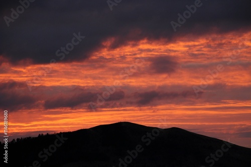 © Katerina, Obraz premium colorful sky at sunrise with a small hill in the foreground