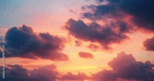 © bright, Fototapeta premium Colorful sky at sunset with dramatic clouds creating a peaceful and serene atmosphere