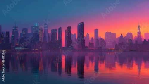 Fototapeta premium Colorful Sky Over Metropolitan Skyline