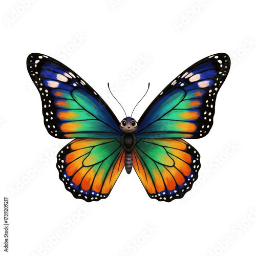 Naklejka premium Colorful smiling cartoon butterfly with open wings