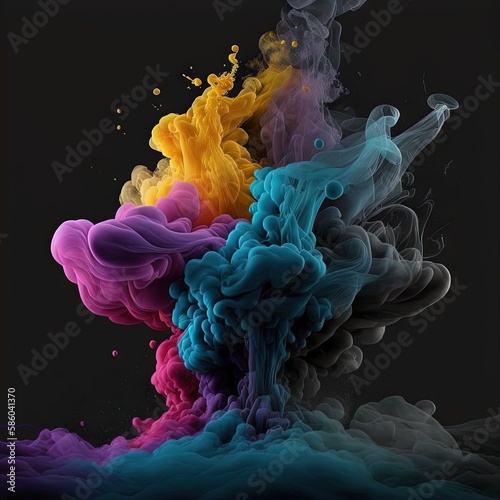 © Matyfiz, Fototapeta premium Colorful smoke, abstract background, wallpaper. Color bomb. Printable image. High quality. Generative AI