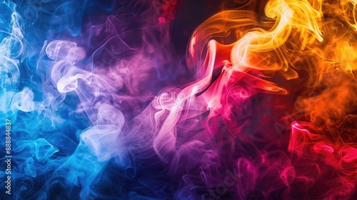 © CreativeBro, Obraz premium Colorful smoke blends on dark backdrop