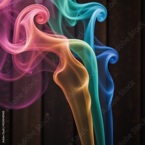 © Pixel Matrix, Naklejka premium Colorful smoke effects on abstract wooden background with texture details