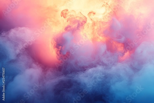 © ChaoticMind, Naklejka premium Colorful smoke swirls create an abstract backdrop of vibrant hues in a mystical atmosphere
