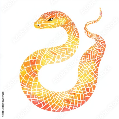 Fototapeta premium Colorful snake artwork featuring a vibrant mosaic design in warm tones in a creative style