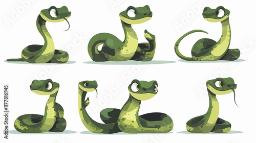 © Mitchel, Obraz premium Colorful Snake in Different Poses: Cartoon Illustration with Wide Angle View