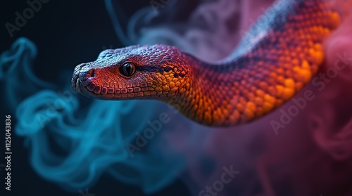 © Viktor_D, Fototapeta premium Colorful snake in vibrant smoke, showcasing stunning patterns.