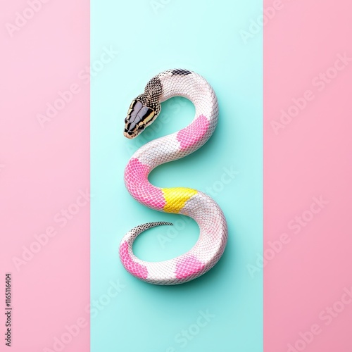 © Sangsung, Fototapeta premium Colorful Snake on Pastel Background for Creative Design