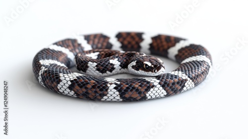 © Sam-th, Obraz premium Colorful Snake with Black, White, and Brown Patterns on White Background