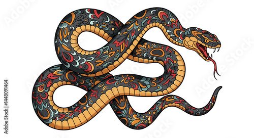 © Anatoly, Obraz premium Colorful Snake with Patterns Against White Background