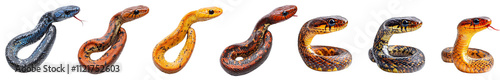 © pawimon, Naklejka premium Colorful snakes with open mouths and ngues out, isolated on white