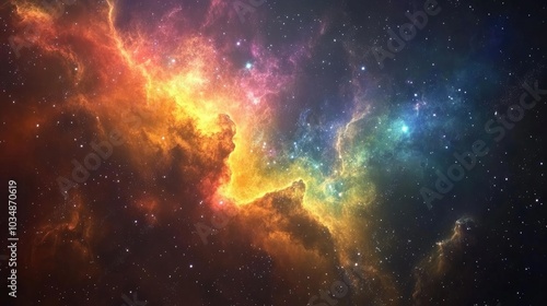 Naklejka premium Colorful space galaxy cloud nebula in a 3D cartoon rendering featuring a...