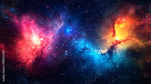 Naklejka premium Colorful space galaxy cloud nebula in the starry night cosmos, featuring vibrant supernovae and intricate patterns, ideal for universe science and astronomy backgrounds or wallpapers, capturing the be