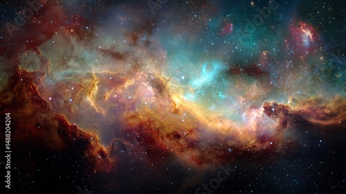 © Adi, Obraz premium Colorful space galaxy cloud nebula. Stary night cosmos. Universe science astronomy. Supernova background