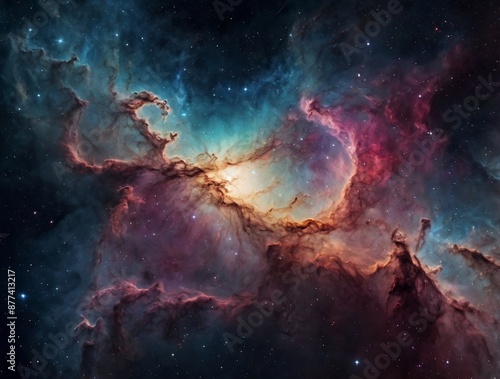 © Real Stuff PNG, Fototapeta premium Colorful space galaxy cloud nebula. Stary night cosmos. Universe science astronomy. Supernova background wallpaper
