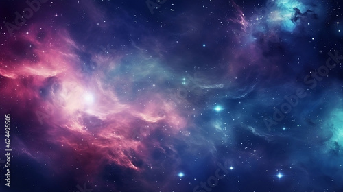 Fototapeta premium Colorful space galaxy cloud nebula. Stary night cosmos. Universe science astronomy. Supernova background wallpaper, Generative Ai
