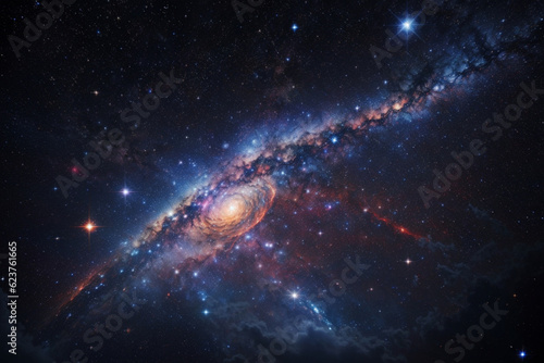 Fototapeta premium Colorful space galaxy cloud nebula. Stary night cosmos. Universe science astronomy. Supernova background wallpaper. Generative Al