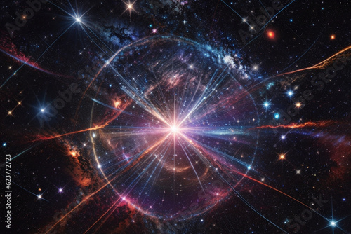 Naklejka premium Colorful space galaxy cloud nebula. Stary night cosmos. Universe science astronomy. Supernova background wallpaper. Generative Al