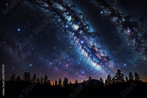 Fototapeta premium Colorful space galaxy cloud nebula. Stary night cosmos. Universe science astronomy. Supernova background wallpaper. Generative Al