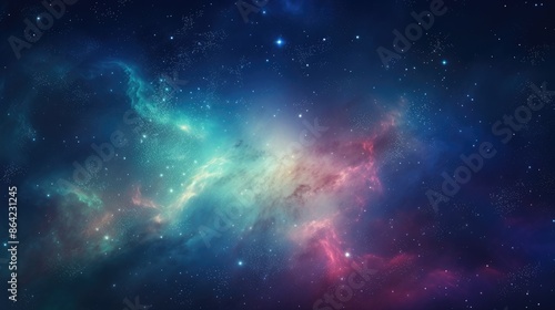 Naklejka premium Colorful Space Nebula Against a Starry Night Sky. Cosmic Galaxy Cloud and...