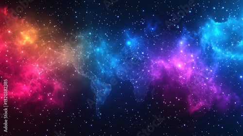 © akhmad, Fototapeta premium Colorful space nebula with world map