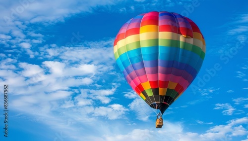 © Paulius, Fototapeta premium Colorful Spectacle: Rainbow Hot Air Balloon Soars Over Michigan Airshow