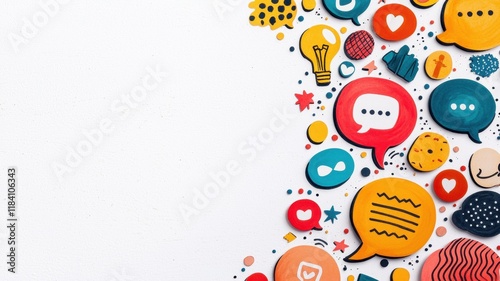Obraz premium Colorful Speech Bubbles Ideas and Social Media Icons on White Background Creative Communication