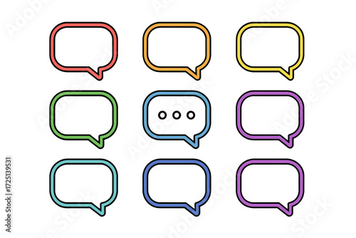 Fototapeta premium Colorful speech bubbles in a grid pattern representing communication and dialogue concepts