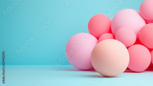 Fototapeta premium Colorful spheres in soft pink and peach tones against light blue background...