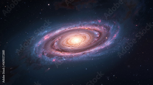 Fototapeta premium Colorful Spiral Galaxy in Deep Space – Cosmic Scene with Glowing Core, Stars,...