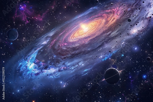 Obraz premium Colorful spiral galaxy with stars and planets in deep space