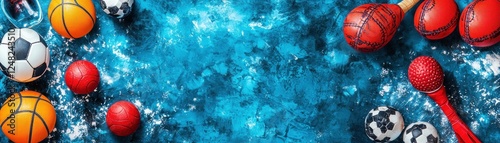 © Iswanto, Obraz premium Colorful sports balls on textured blue background