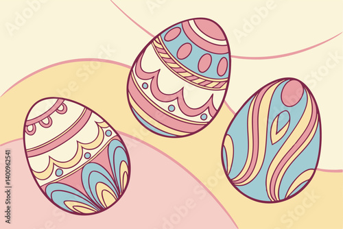 Fototapeta premium Colorful spring eggs vector illustration with floral pattern