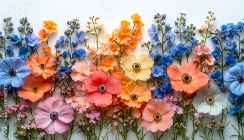 © Alicia, Fototapeta premium Colorful spring flowers flat lay