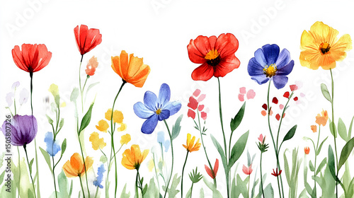 © popofyear, Fototapeta premium colorful spring flowers, water color