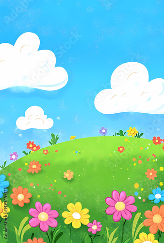 Obraz premium Colorful Spring Meadow with Fluffy Clouds