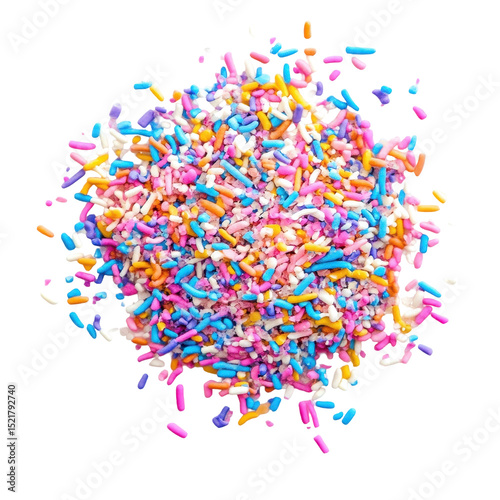 Fototapeta premium Colorful sprinkles scattered across a white surface for festive baking and...