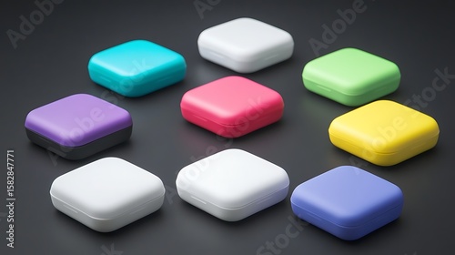 © Kang, Obraz premium Colorful square containers arranged on a dark surface